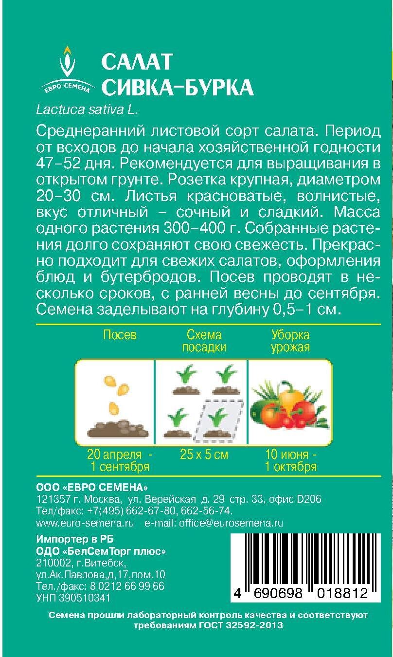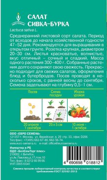 - Семена Салат Сивка-бурка листовой цв/п 0,5г