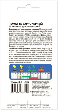-24%Пригоден для длительного хранения. Среднепоздний сорт для пленочных теплиц и открытого грунта. Растение индетерминантное, высотой более 2 м. Плод темно- бурого цвета массой 70-90 г, сливовидной формы, с зеленым пятном в месте прикрепления плодоножки. Период всходов до начала созревания 120-130 дней. Вкусовые качества отличные. Пригоден для консервирования и длительного хранения. При хорошем уходе и правильном режиме питания с каждого растения можно получить не менее 3-4 кг плодов. Условия выращивания. Посев семян на рассаду в марте. При оптимальной температуре проращивания +22-25°С всходы появляются через 5 дней. В открытый грунт высаживают в мае по схеме 40х70 см. Уход заключается в своевременном поливе (особенно важно поливать томат перед цветением, с появлением завязей и в начале созревания плодов), подкормке комплексными удобрениями, прополке и рыхлении.