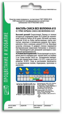 - Семена Фасоль Сакса без волокна 615 5г (80)