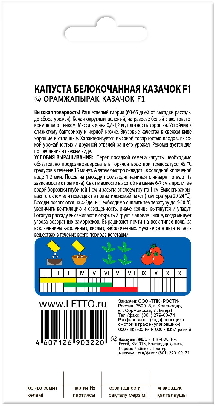 - Семена Капуста белокочанная Казачок 0,25г (250)
