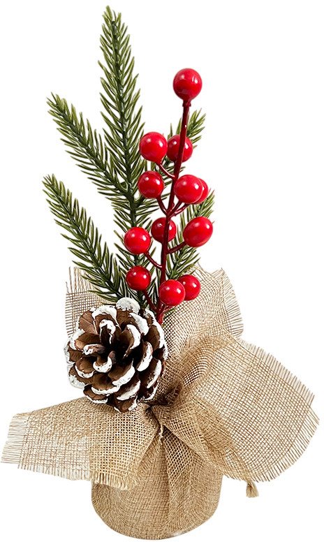 - Украшение настольное 20см с сосновой шишкой и красными ягодами ПЭ SYSPS-0925365