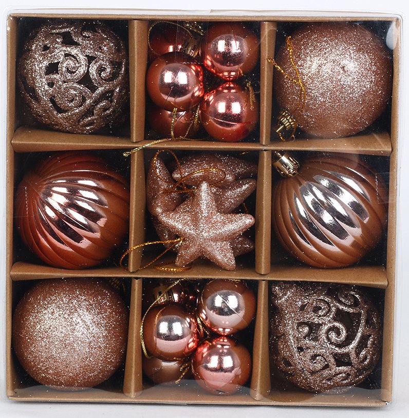 Представьте: нежные переливы розового золота на ветвях ёлки, игра света на глянцевых поверхностях, утончённые формы, создающие атмосферу роскоши и уюта. Этот набор превратит праздничное оформление в настоящее произведение искусства — достаточно развесить украшения, чтобы пространство наполнилось волшебным сиянием.