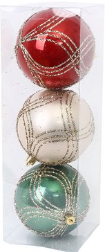 - Набор шаров 3шт 10см, жемчужный, зеленый+шампань+красный, SYQB-0125012