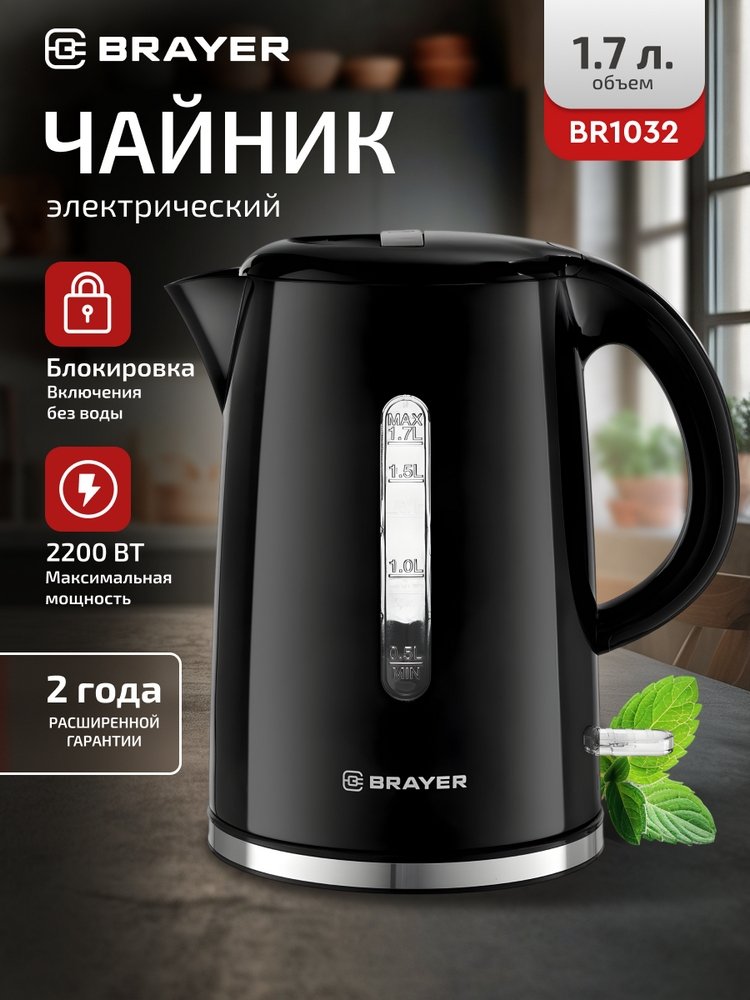 - Чайник электрический Brayer 1032BR 2200Вт 1,7л пластик, черный