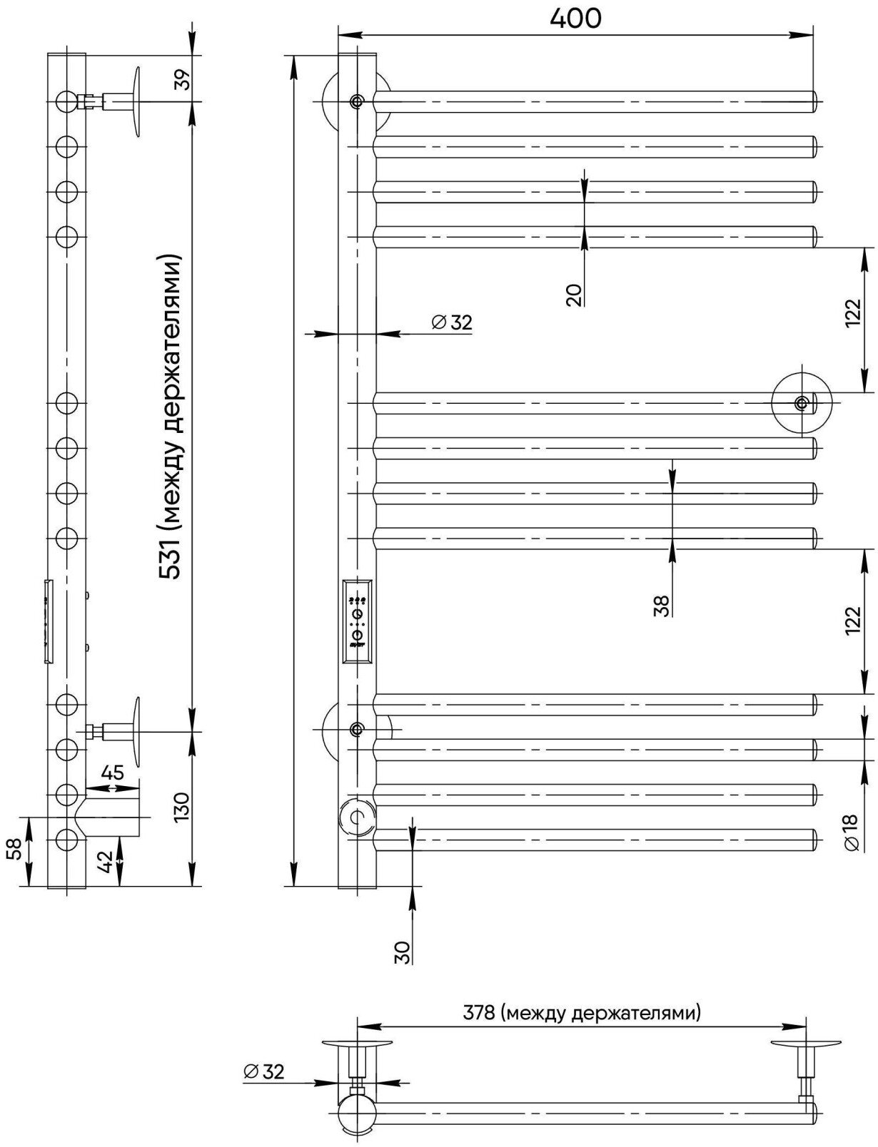 -27%Полотенцесушитель электрический INDIGO Family хром. Полотенцесушитель с одной стойкой, имеет 3 держателя для надежной фиксации на стене.