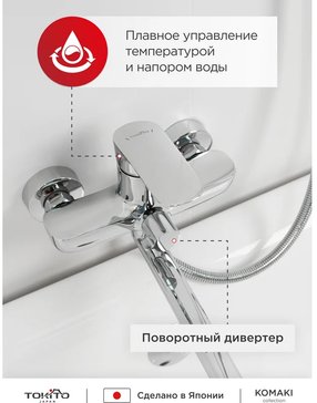 - Смеситель для ванной TOKITO KOMAKI 1015 в комплекте с душевыми аксессуарами