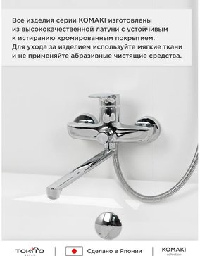 Откройте дверь к стильному и утонченному дизайну в вашей ванной комнате с смесителем для ванны с длинным изливом из коллекции KOMAKI от бренда TOKITO. Этот смеситель - не просто элемент сантехники, это источник гармонии и элегантности, призванный сделать вашу ванную зону местом роскоши и удовольствия.