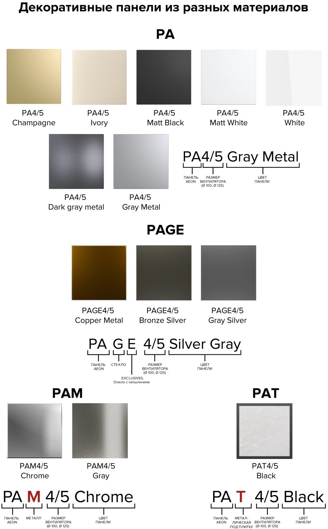Декоративная панель из матового стекла подходит для всех моделей вентиляторов AEON. Стильная декоративная накладная панель позволяет интегрировать AEON в любой интерьер и обновлять его при желании, выбирая цвет панели из разнообразия вариантов.