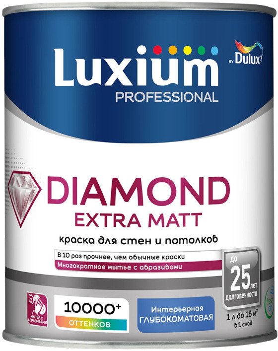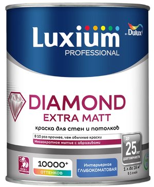 - Краска для стен и потолков Luxium Diamond Extra Matt BW глубокоматовая белая (1л)