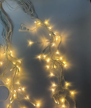 - Электрогирлянда внешняя Бахрома 2х0,6м 100LED IP44, теплый белый, контролер, с коннектором, прозрач.кабель