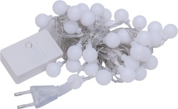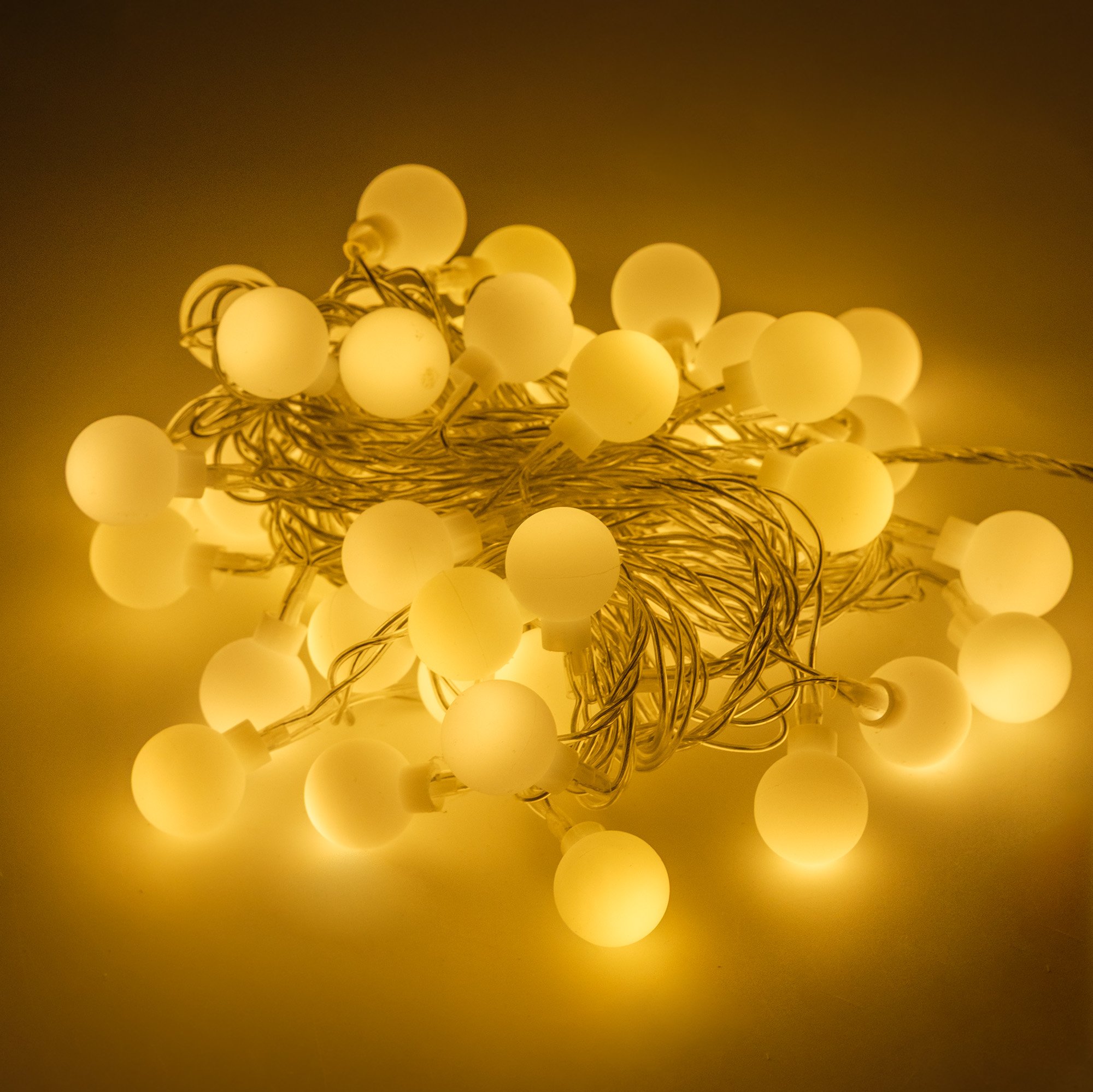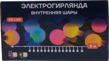 - Электрогирлянда внутренняя Шары 1,7см 5м 50LED, теплый белый, прозрачные лампы с газом, контролер