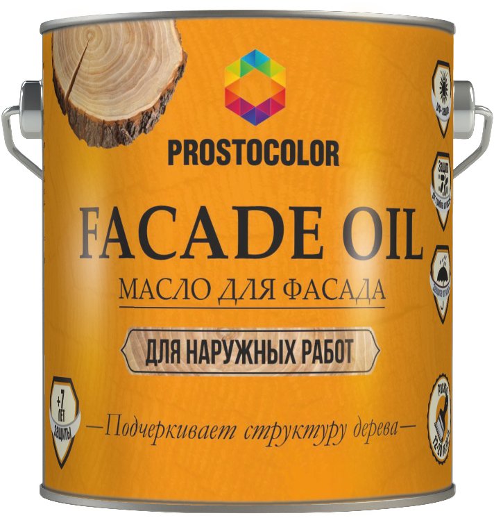 Используется как финишное покрытие. Предназначено для наружных работ (за исключением бесцветного масла, оно используется, как база под колеровку). Идеально подходит для всех типов деревянных строений (дома, бани, бытовки, заборы, беседки) и пород древесины (включая твердые породы и термодревесину). Легко наносится. Подчеркивает структуру древесины. Глубоко проникает в поры, не образовывая пленку, что позволяет древесине дышать. Защищает древесину от влаги и растрескивания. Масло для фасада PROSTOCOLOR прошло испытание в климатических камерах, и показало наилучший результат благодаря сбалансированной формуле, и высокому качеству используемых компонентов. Продукт готов к применению. Подготовка поверхности