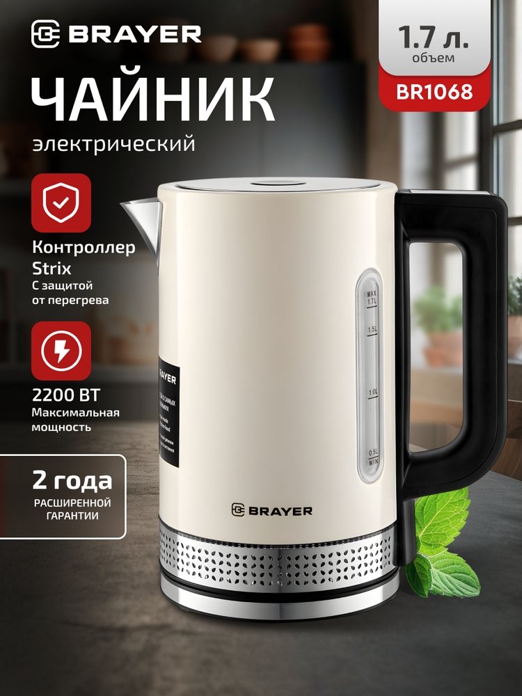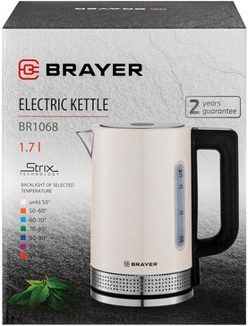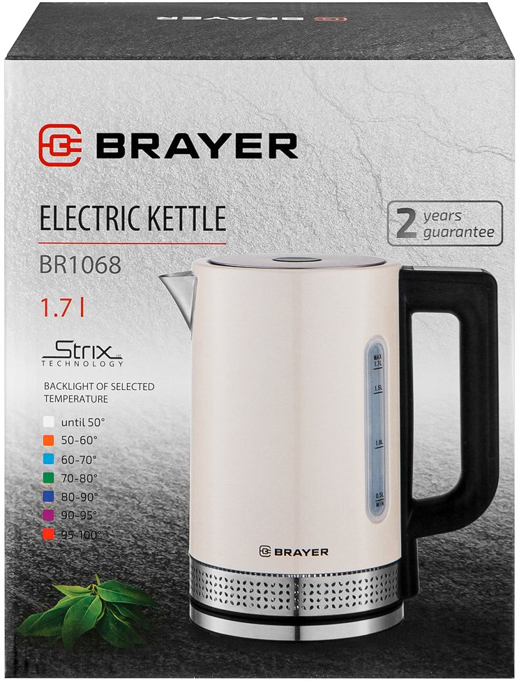 - Чайник электрический Brayer 1068BR 2200Вт 1,7л нерж.сталь, бежевый