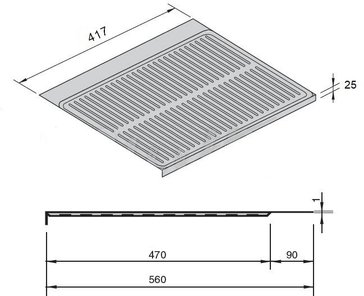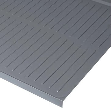 Глубину установки поддона можно легко скорректировать, укоротив задний отрезной бортик. Материал достаточно эластичный и позволяет отрезать лишнюю длину бортика канцелярским ножом или ножницами.