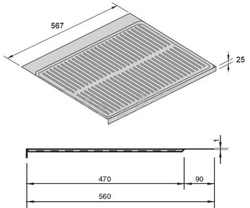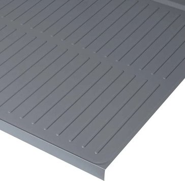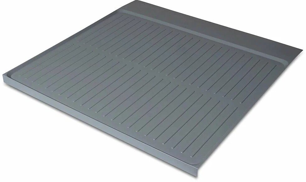 Глубину установки поддона можно легко скорректировать, укоротив задний отрезной бортик. Материал достаточно эластичный и позволяет отрезать лишнюю длину бортика канцелярским ножом или ножницами.