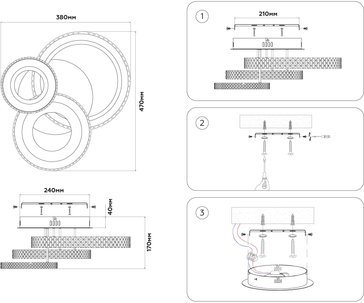 - Светильник потолочный светодиодный с пультом FA8867/3 WH белый 3000K-6400K 38W 470х380х170мм (ПДУ ИК)