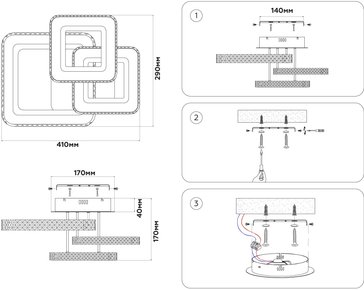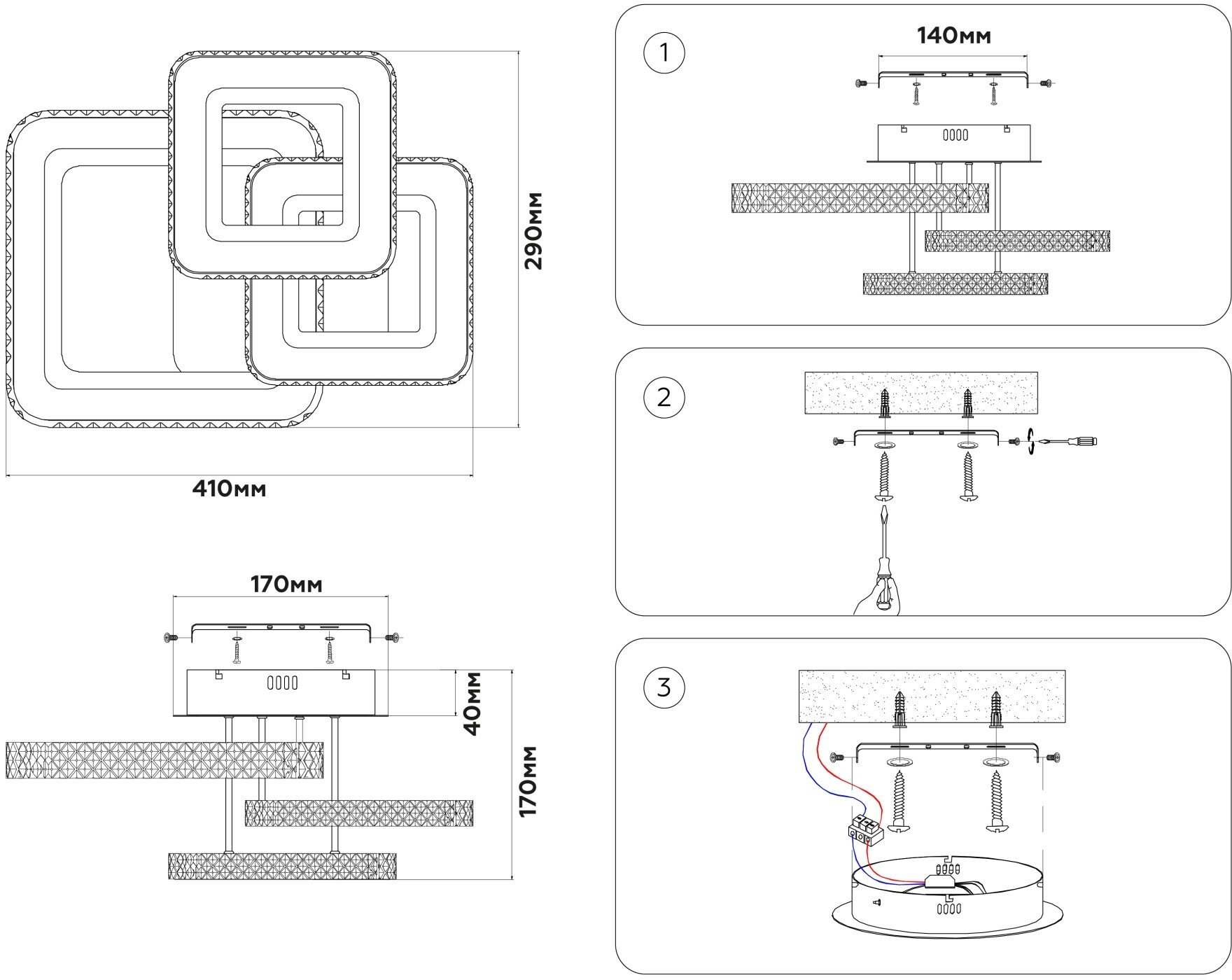 - Светильник потолочный светодиодный с пультом FA8877/3 WH белый 3000K-6400K 62W 410х290х170мм (ПДУ ИК)