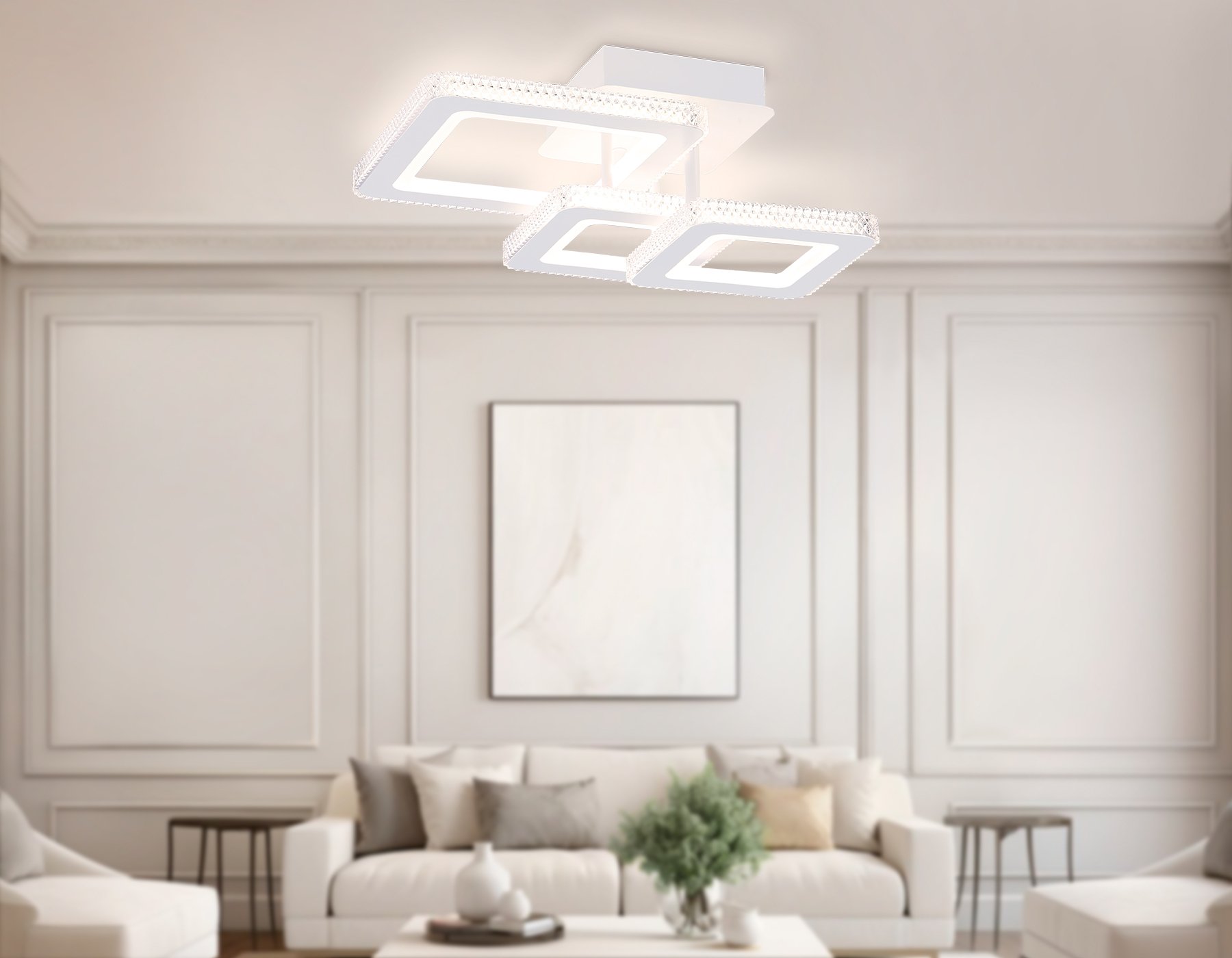 Современный потолочный светодиодный светильник, коллекция ACRYLICA. Модель FA8877 представлена в современном стиле Неоклассика. Светильник выполнен в белом цвете, состоит из 3 акриловых плафонов на металлическом каркасе. Эта модель оснащена встроенными светодиодами, благодаря чему вы забудете о замене дополнительных ламп. Так же с помощью инфракрасного пульта вы сможете регулировать цветовую температуру, яркость освещения и ночной режим. Данная модель подходит для натяжных потолков и будет прекр