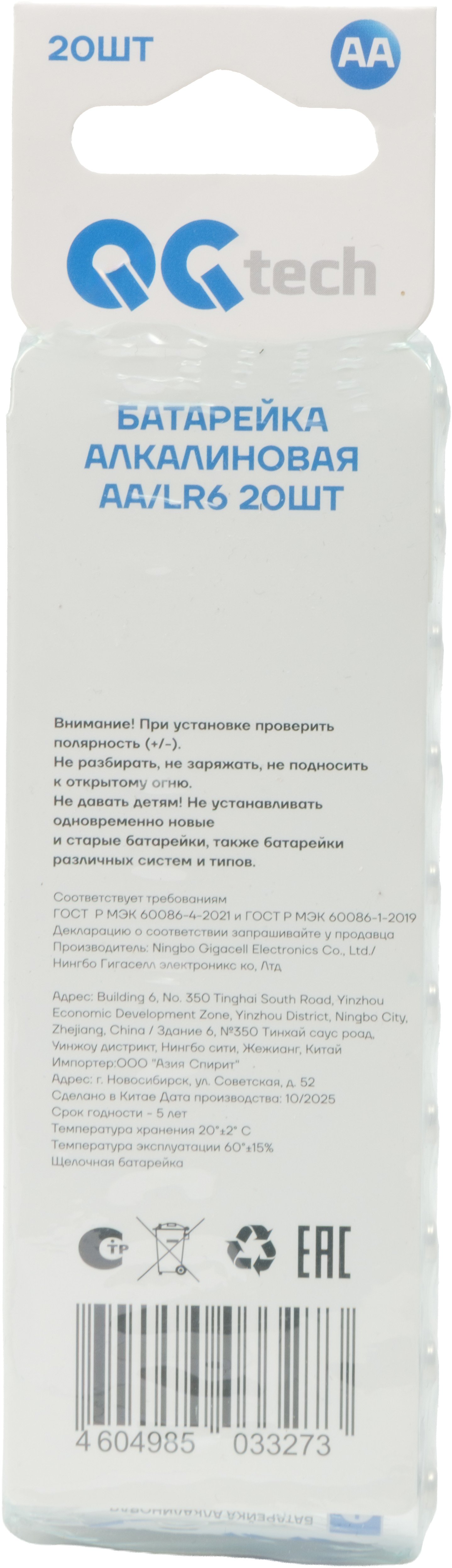 - Батарейка алкалиновая QG tech АА/LR6 20шт