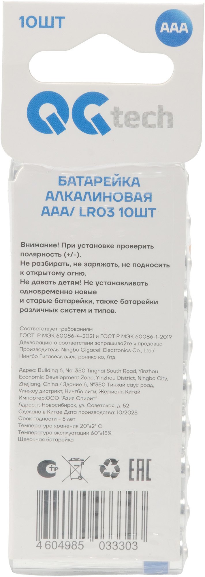 - Батарейка алкалиновая QG tech ААА/ LR03 10шт