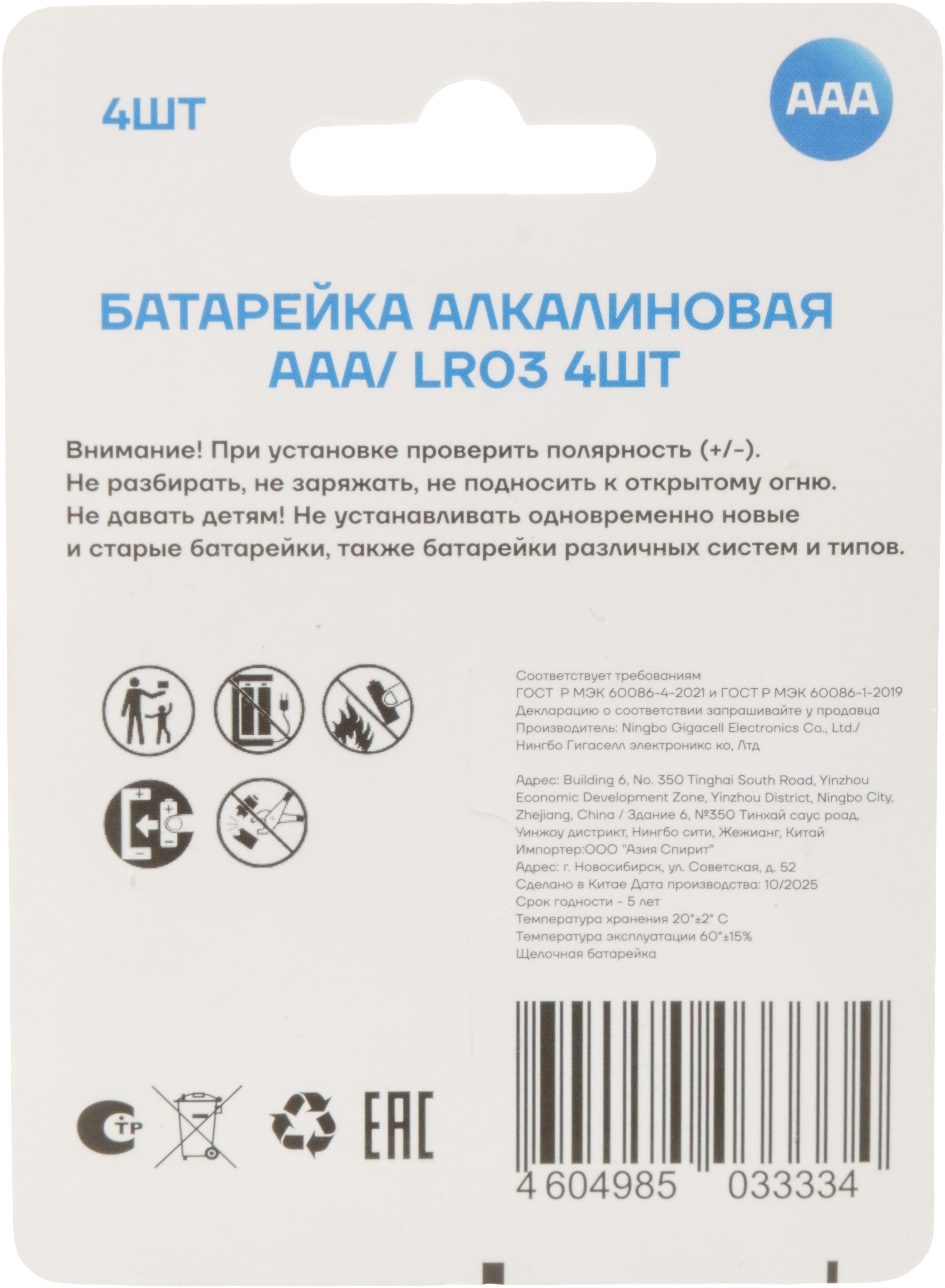 - Тип ААА/ LR03