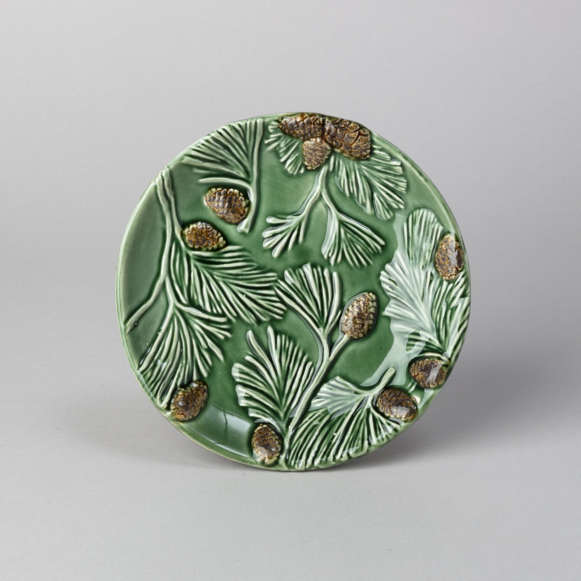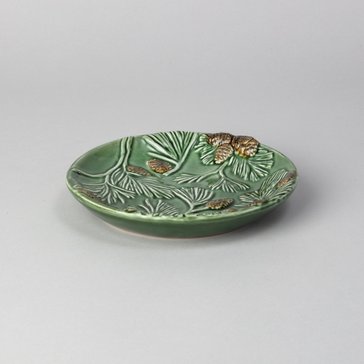 Наша посуда отличается насыщенными зелеными оттенками, которые ассоциируются с зимним лесом и свежестью природы. Объемные шишки и сосновые ветки, изящно оформленные на поверхности изделий, создают поистине волшебную атмосферу, способную перенести вас в сказочный лес. Эти элементы дизайна представлены с особым вниманием к деталям, что подчеркивает уникальность каждого изделия.