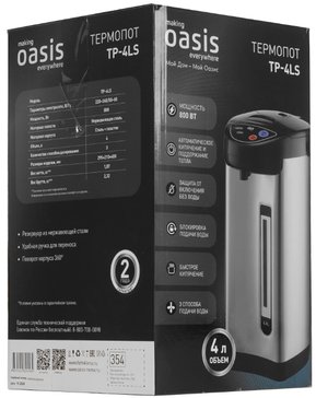 - Термопот Oasis TP-4LS 800Вт 4л нерж.сталь, серебристый