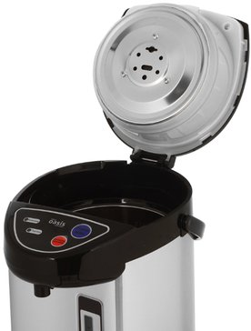 Термопот – незаменимое устройство для любителей горячих напитков. Объёма 4 литров достаточно для большой семьи или небольшого офиса. Устройство имеет три способа подачи воды: электрической помпой, рычажком на носике или механическим насосом, каждый может выбрать тот, который удобен ему. Шкала уровня воды даёт понять, когда нужно подлить ещё жидкости.