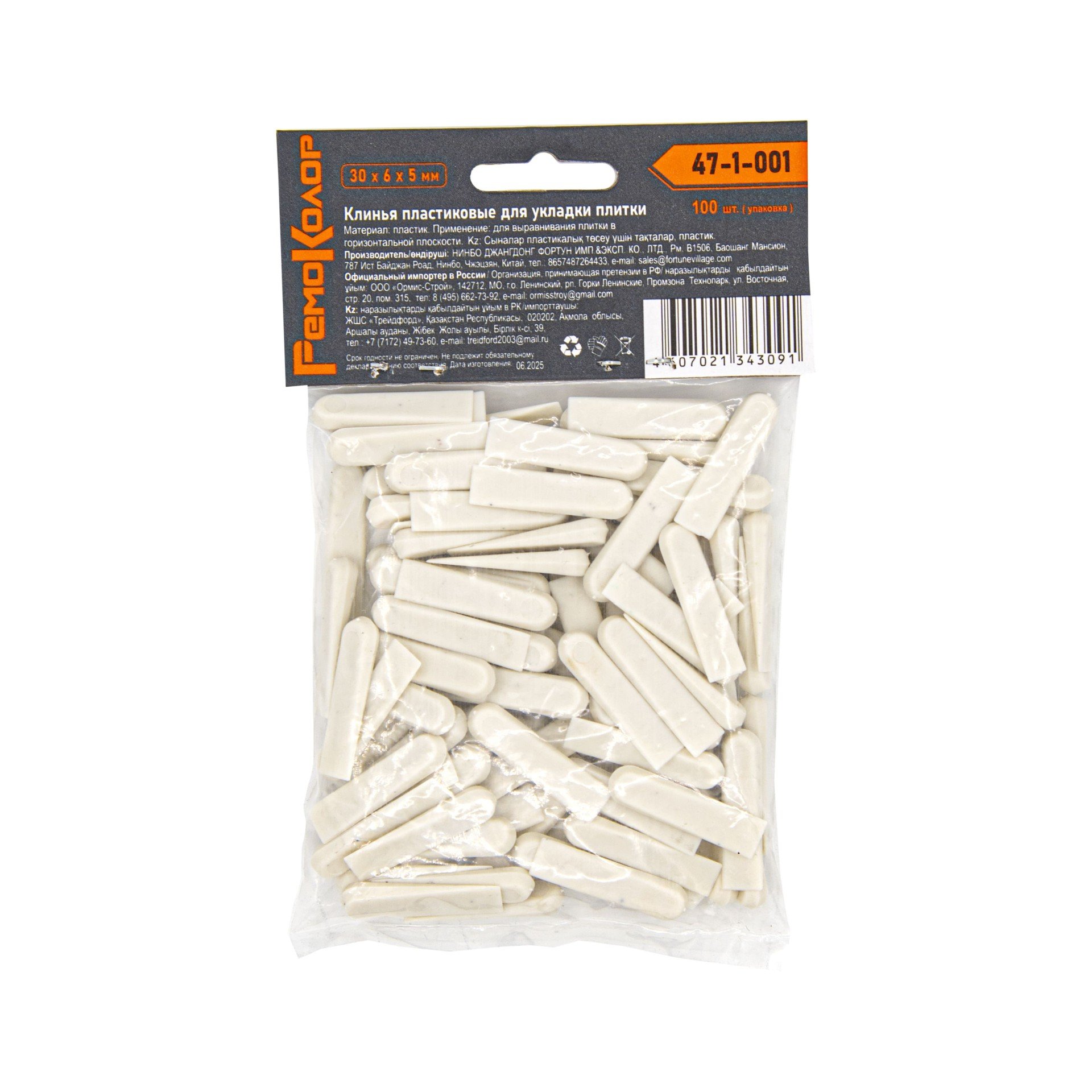 - Клинья пластиковые для укладки плитки, 30х6х5мм 100шт (уп)