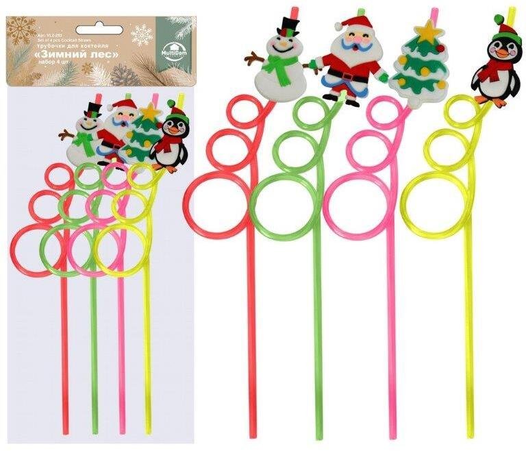 - Трубочки д/коктейля Multidom Зимний лес 4шт