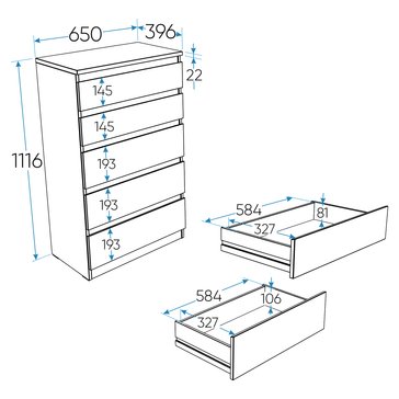 - Комод 5 ящиков Кастор 111,6х65х39,6см КДСП Белый