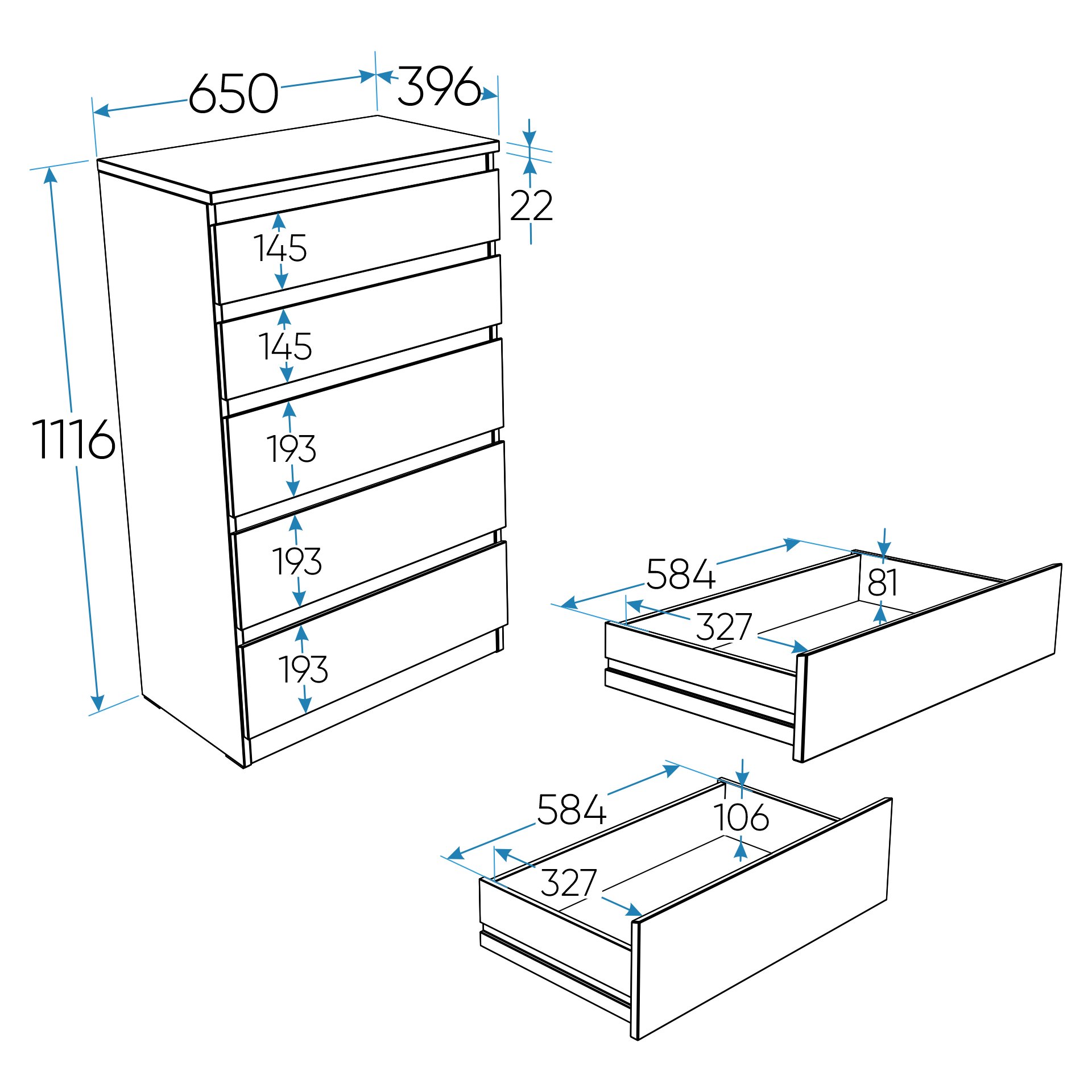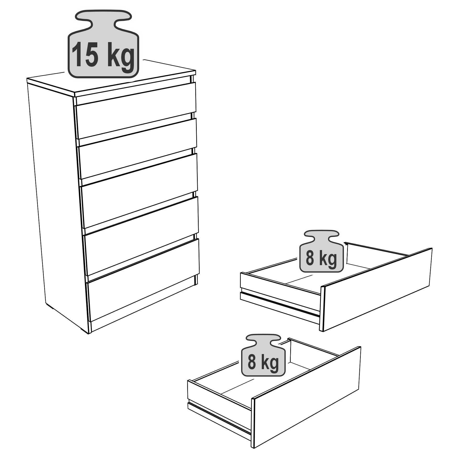 Максимальная нагрузка: на крышку — 15 кг, на каждый ящик — 8 кг.