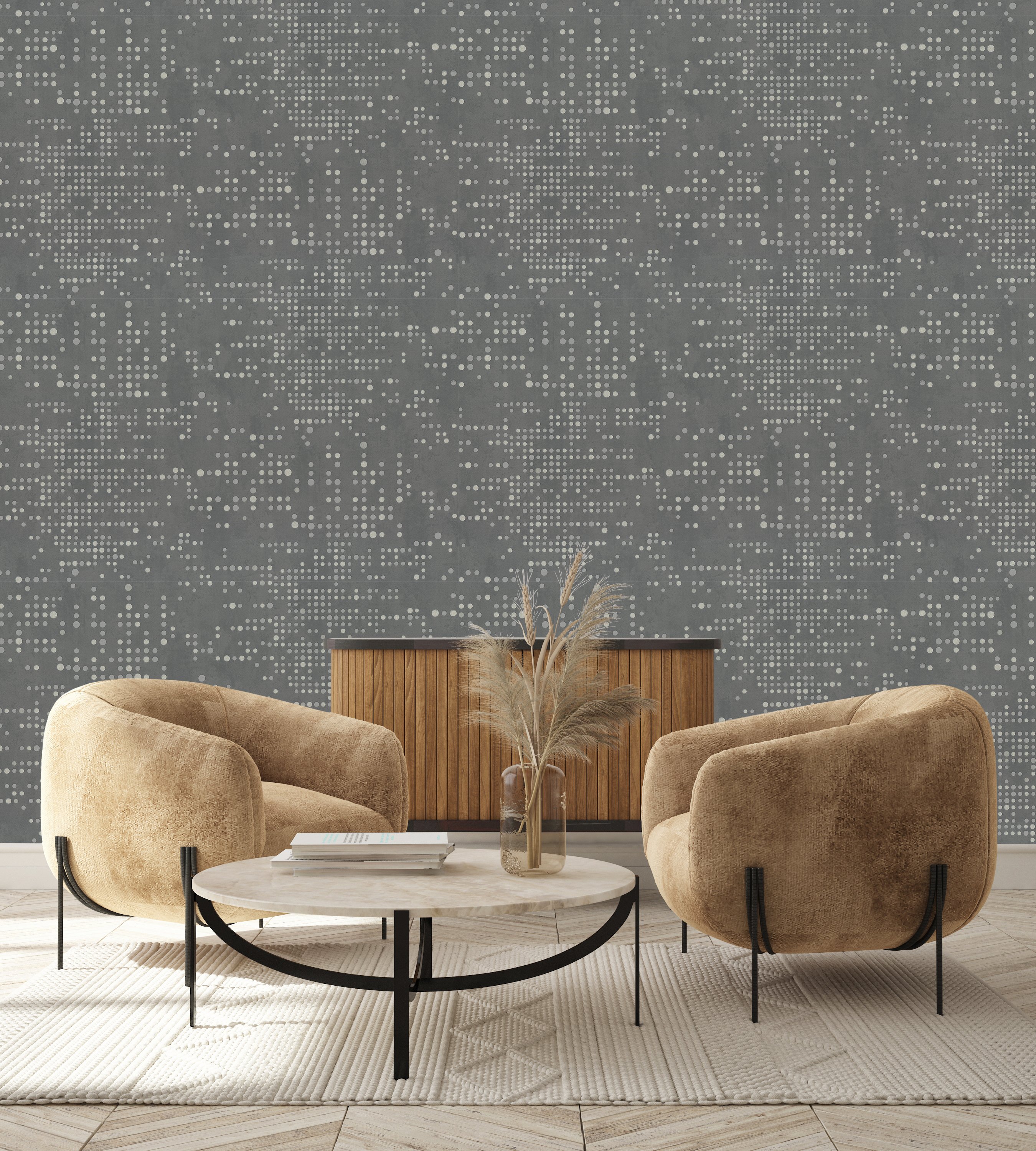 Коллекция обоев «Dotera» представляет собой современное переосмысление минимализма, вдохновленное цифровыми технологиями и футуризмом. Название коллекции отсылает к английскому слову dots — «точки», и этот выбор не случаен — на матовом фоне полотен ярко проступает динамичный орнамент в виде кружков разного размера. Эти «точки» расставлены не в хаотичном порядке — наоборот, они выстраиваются в ритмичный узор, который напоминает цифровой код или пиксели, превращая стены в ожившую абстрактную картину