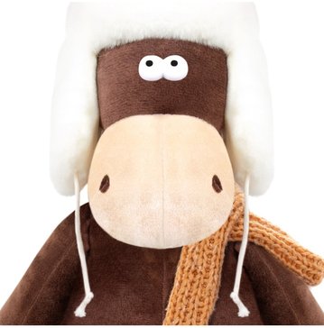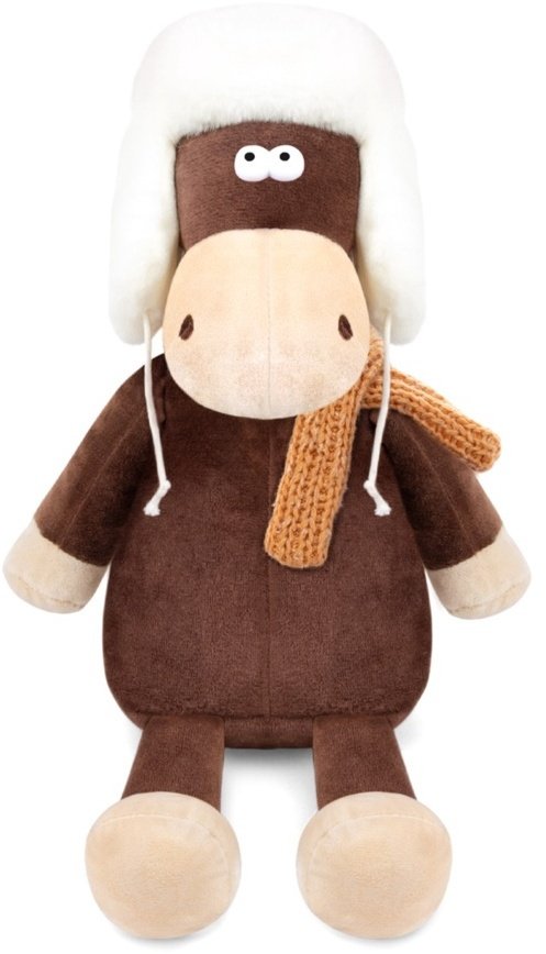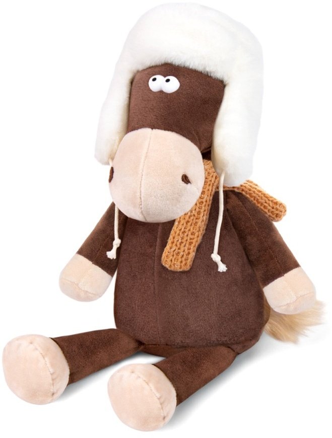 - Игрушка Конь Василий в ушанке и шарфе 27см