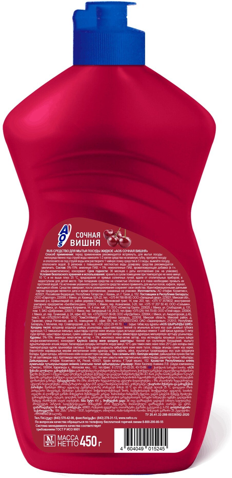 - Средство д/мытья посуды AOS 450мл Сочная вишня