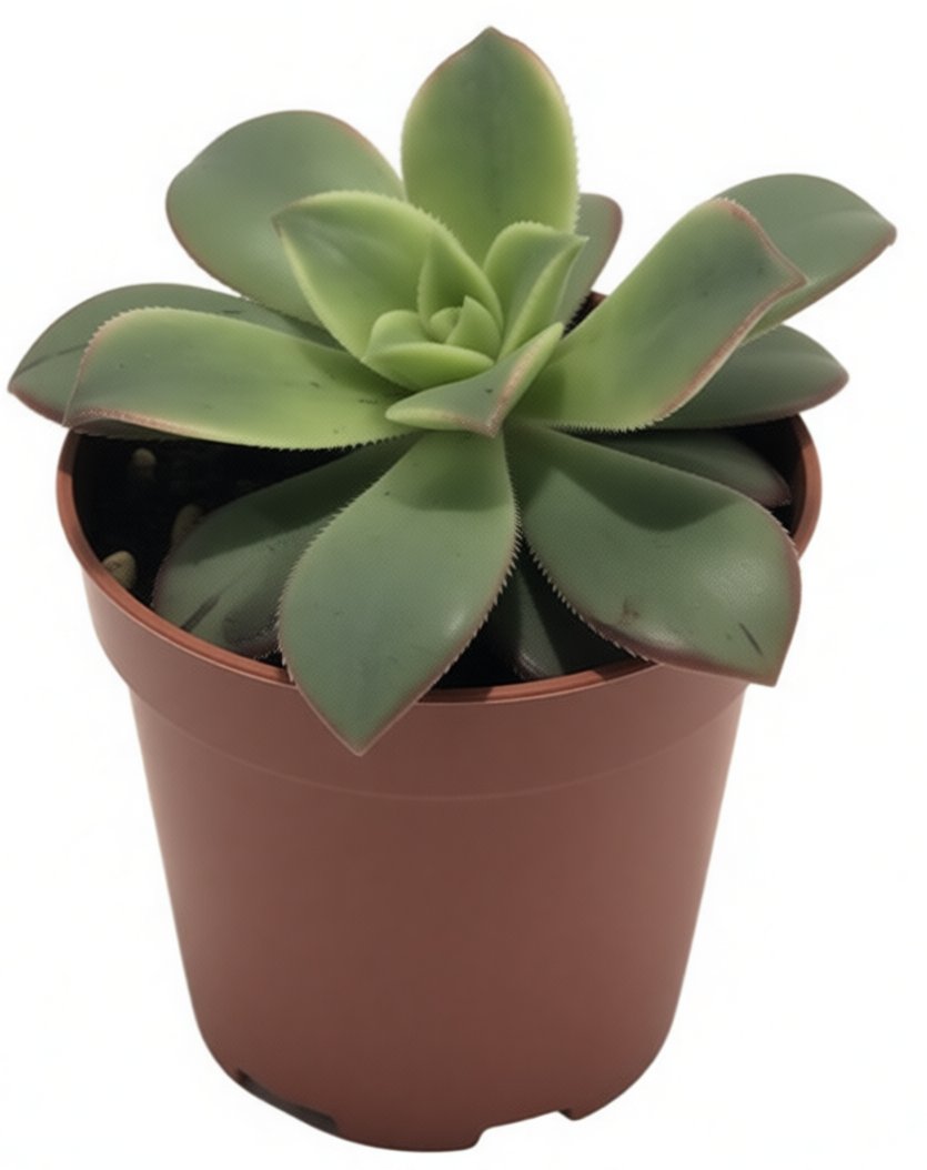 Этот удивительный суккулент мгновенно притягивает взгляды: сочные, мясистые листья собраны в эффектные розетки, напоминающие цветущий бутон. Особенность сорта — изысканная градиентная окраска: от нежно‑зелёного в центре до насыщенно‑розово‑коричневого по краям.