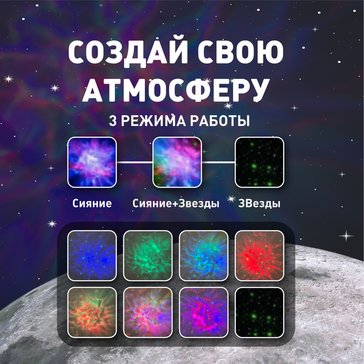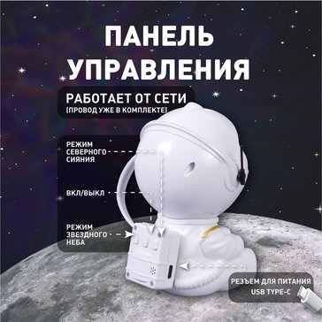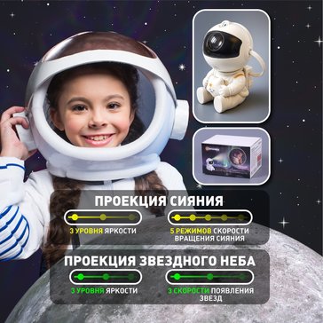 Прекрасный подарок в день рождения, Новый год или любой другой праздник. Такой настольный прожектор станет любимым аксессуаром ребенка или подростка, особенно если он увлекается темой космоса. Его универсальный дизайн подойдет мальчику и девочке любого возраста. Белый корпус изделия гармонично впишется в интерьер спальни или школьного рабочего места.