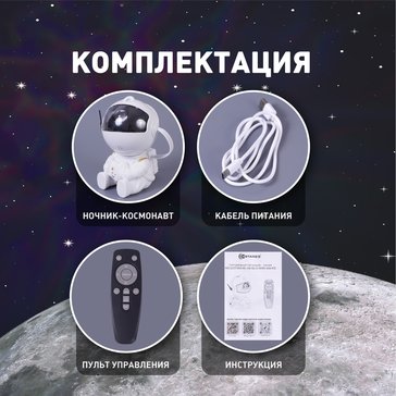 Оригинальный ночник в форме космонавта станет отличным выбором для создания уютной атмосферы в спальне или детской комнате. Эта стильная лампа с функцией проектора позволяет наслаждаться красивым изображением звездного неба прямо у себя дома. Идеально подходит как для детей, так и для взрослых, добавляя нотки магии в интерьер.