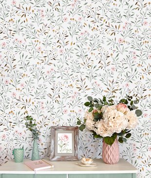 -6%Цельность композичии и наполненность пространства дизайна создают умиротворяющую обстановку и успокаивающий ритм. Узор объединен благодаря единому рельефу тиснения, который имитирует переплетение нитей текстиля. Ветки, усыпанные некрупными нежными цветами, застилают все полотно, как летняя полянка. Эти обои создают атмосферу легкости, уюта и спокойствия. Дизайн сочетаются с натуральными материалами и текстилем. Разные способы поклейки обоев, такие как вертикальное или горизонтальное расположение, использование вставок, панно, могут создать разные визуальные эффекты и изменить восприятие пространства.