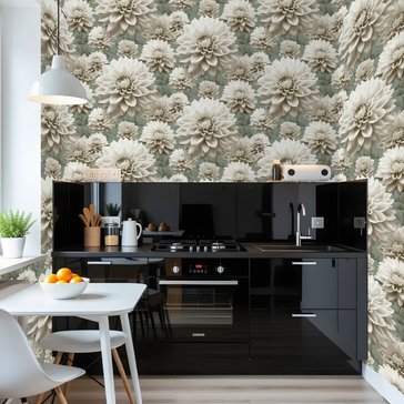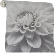 Рисунок обоев с плавными переходами цвета выглядит реалистично и объемно. Мягкие тени и элегантные оттенки передают красоту цветущего бутона. Матовое изображение эффектно выделяется на гладкой поверхности фона, зеркальный блеск которого создает ощущение глубины. Благодаря масштабу, реалистичности, контрасту текстур дизайн станет впечатляющим и роскошным украшением интерьера.