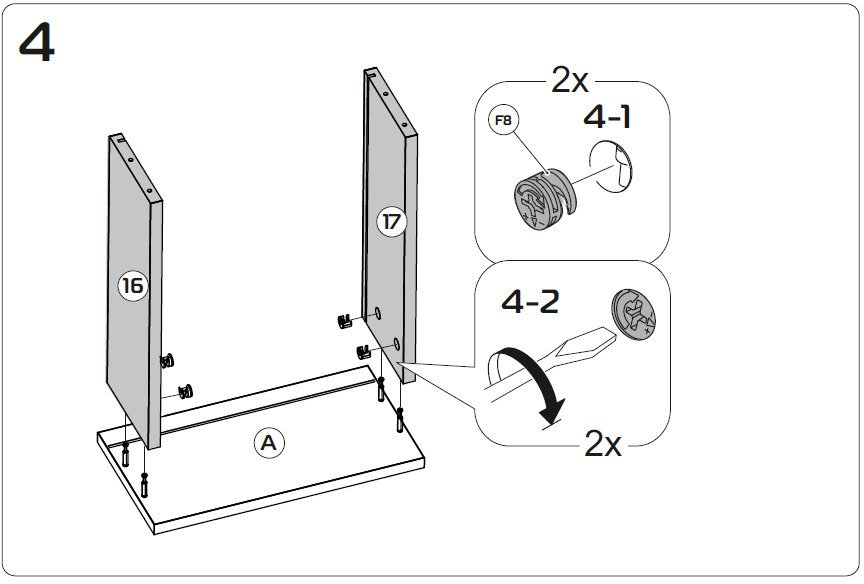 Изделие выполнено из надёжной ЛДСП с ударопрочной кромкой, безопасно для здоровья (соответствует классу эмиссии E1) и выдерживает значительную нагрузку. Монтаж предусматривает удобную регулировку по высоте без специальных инструментов.