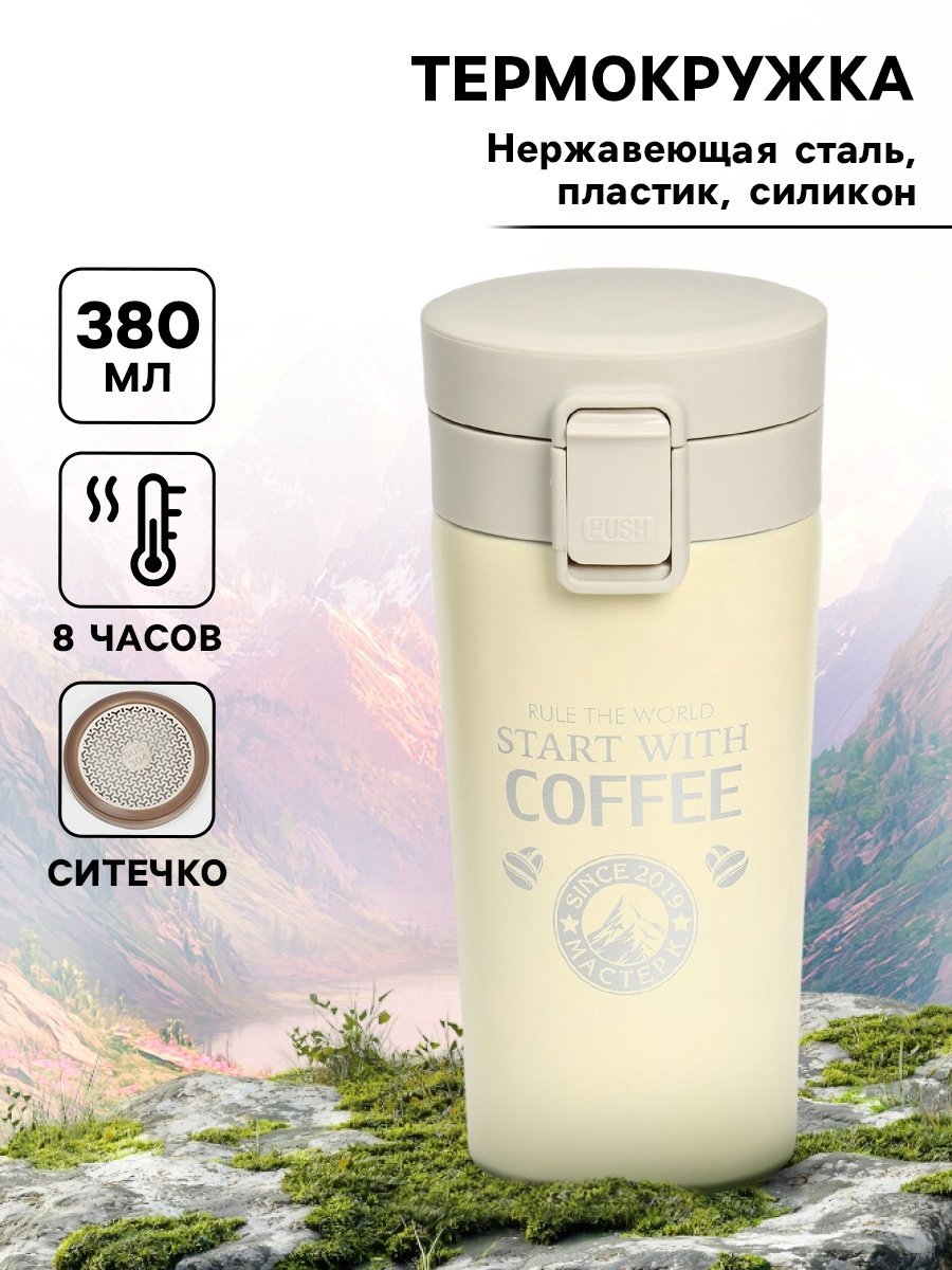 Термокружка Style «Start with coffee» с ситечком (380 мл) — ваш персональный бариста в дороге, офисе и путешествиях.