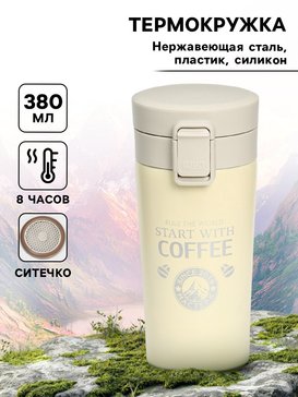 - Термокружка Style Start with coffee с ситечком 380мл нерж.сталь, пластик, силикон, бежевый