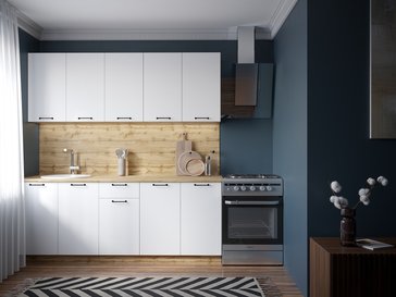 -12%Идеальный выбор для создания светлой, просторной и невероятно функциональной кухни. Этот гарнитур длиной 2 метра предоставляет достаточно места для хранения всей кухонной утвари, сохраняя при этом ощущение легкости и чистоты благодаря белоснежному цвету. Вместительные шкафы и готовые столешницы позволят быстро организовать удобное рабочее пространство, которое будет радовать вас каждый день.