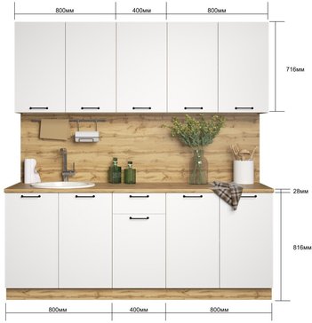 - Гарнитур кухонный Sura Хелмер 2м Белый/Белый (со столешницей)