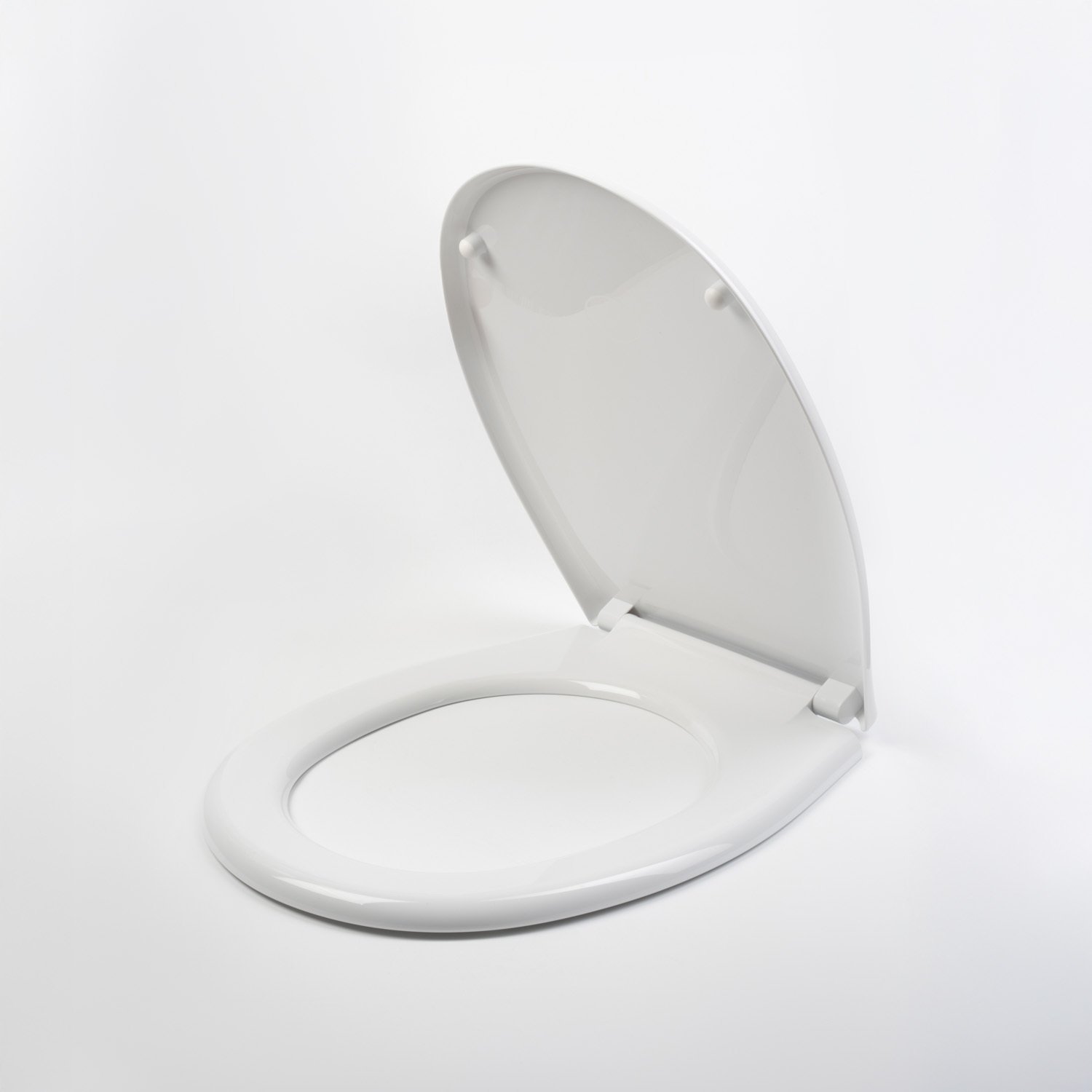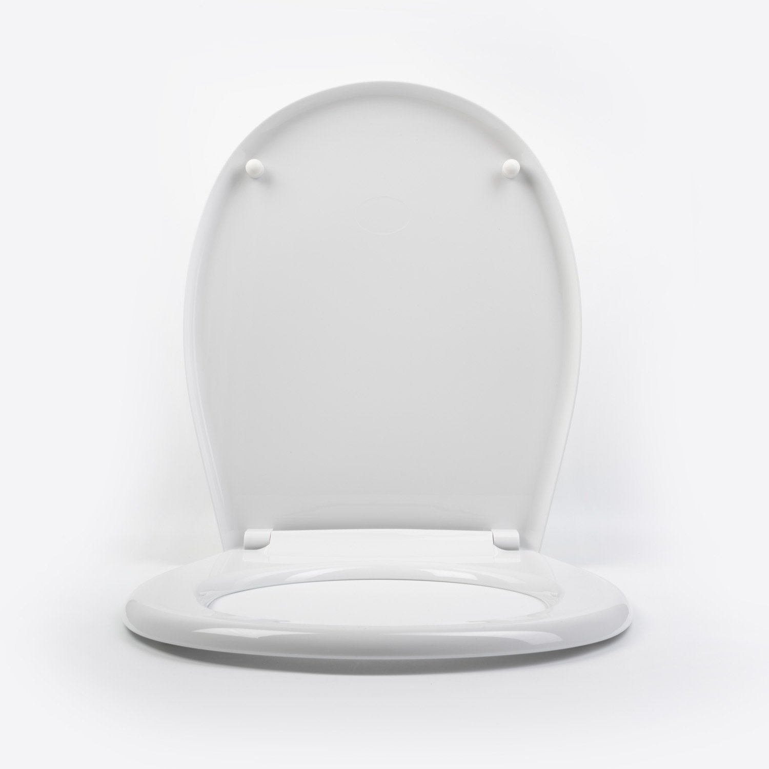 Белое пластиковое сиденье Milardo® округлой формы. Модель практически универсальна и подойдет к любому интерьеру и сантехнике – от современной до классической ванной, как с напольным унитазом, так и с подвесным, с инсталляцией и с обычным бачком.