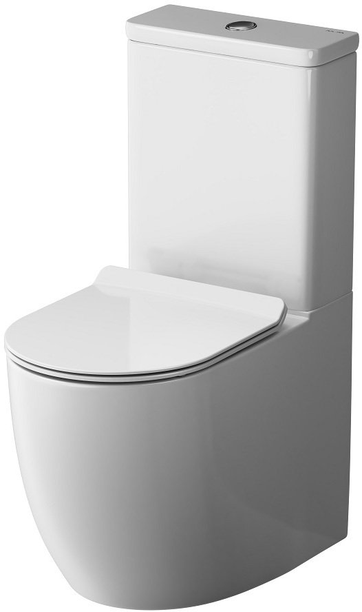 Особенность модели — сиденье с механизмом микролифт: оно опускается плавно и бесшумно, исключая резкие удары и повышая комфорт в повседневном использовании. Конструкция унитаза безободковая: это упрощает уборку и снижает риск скопления грязи и микробов в труднодоступных местах.