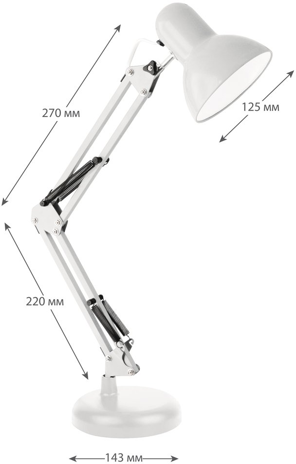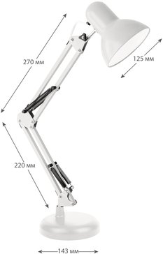 Цвет белый, патрон Е27, мощность 60Вт, питание от сети, материал металл+пластик. Поставляется без лампы. Упаковка – индивидуальная коробка, размер 290х160х160мм.