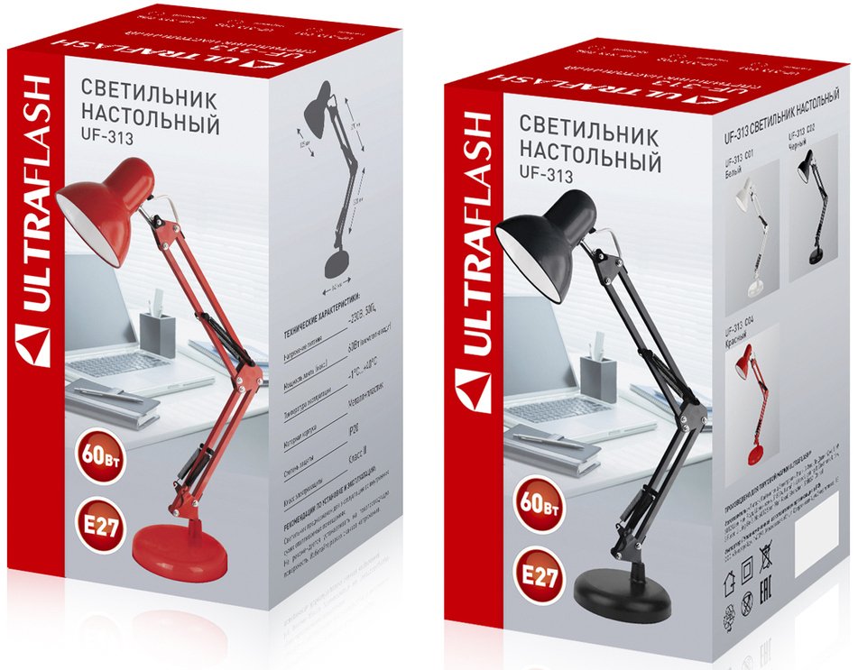 - Светильник настольный Ultraflash UF-313 С01 белый 230В, 60Вт, E27