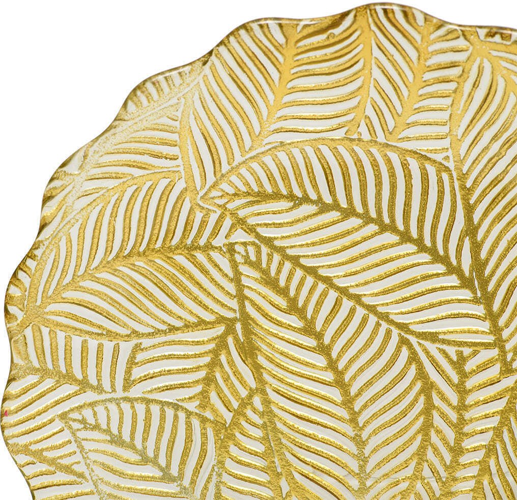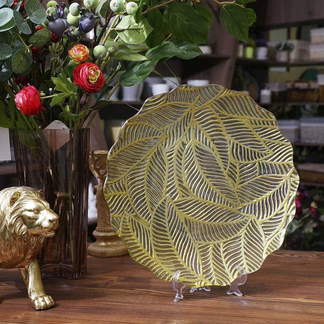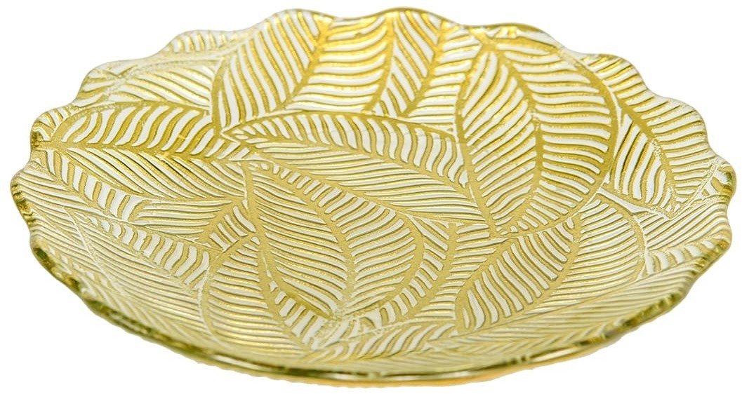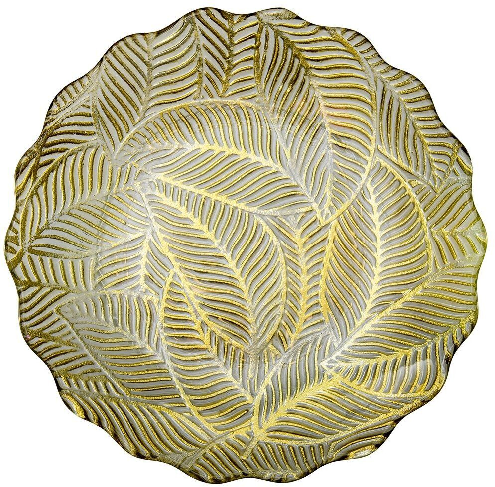 - Блюдо декоративное круглое Листья 35х7,5х35 стекло золотой